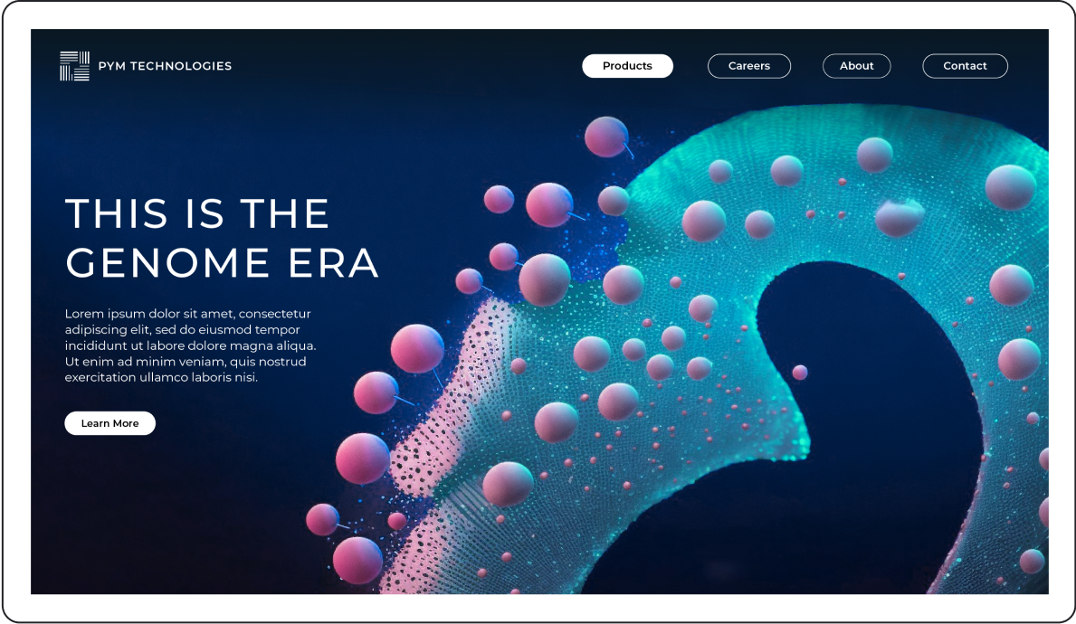 /imagine: website homepage with a microscopic cell as the hero image, white background, microscopic, nano, abstract, cell, DNA https://s.mj.run/EIAoex__u1E, dna --ar 3:2