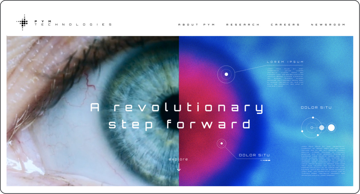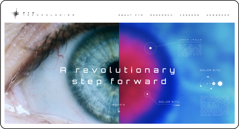 Above-the-fold Pym Technologies website design
