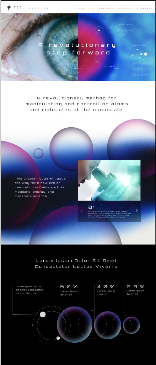 /imagine: a simple website homepage, white, science, technology