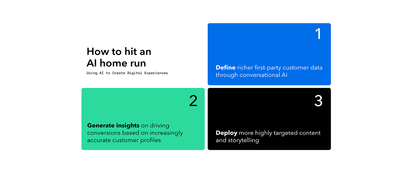 Moving to ‘second base’ involves using this unbiased, owned conversational data to gather insights into what drives a meaningful action or conversion. These insights underpin a digital and AI content strategy, one that fills in gaps and addresses exactly what audiences are looking for. This stage combines AI and human brains to shape the direction and effectiveness of the next wave of content based on truly accurate profiles of customers’ needs and preferences.