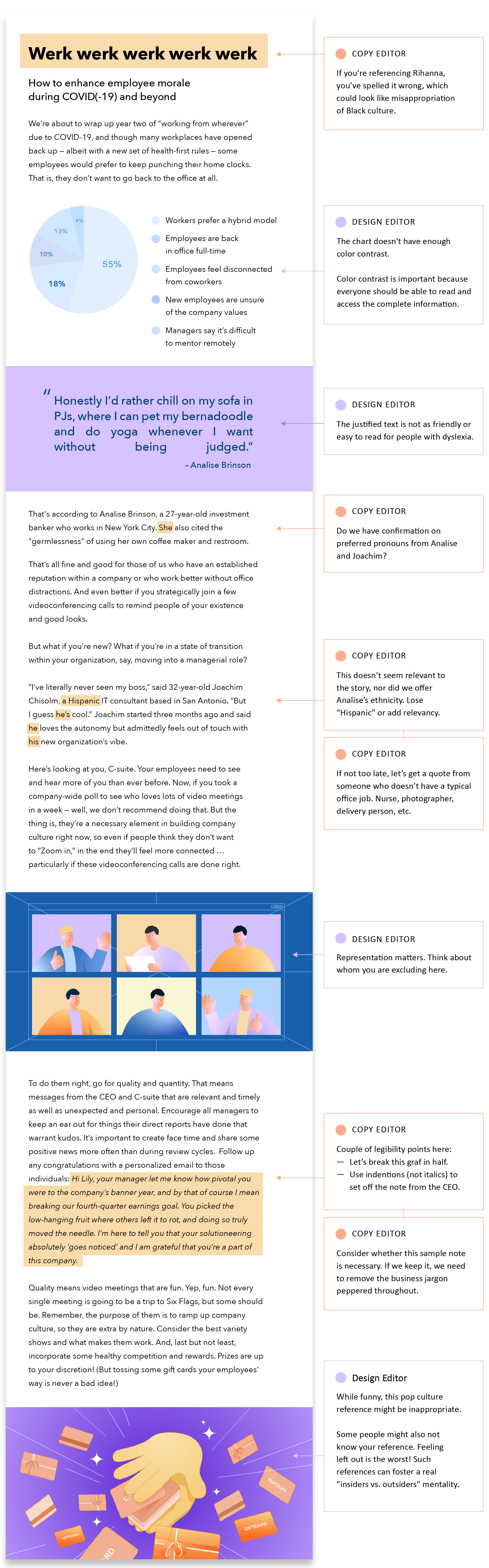 To help others adjust their inclusion lens, this hypothetical article for a hypothetical client takes us into the minds of conscientious reviewers. They’re not just correcting mistakes — they’re bringing more people into the circle.