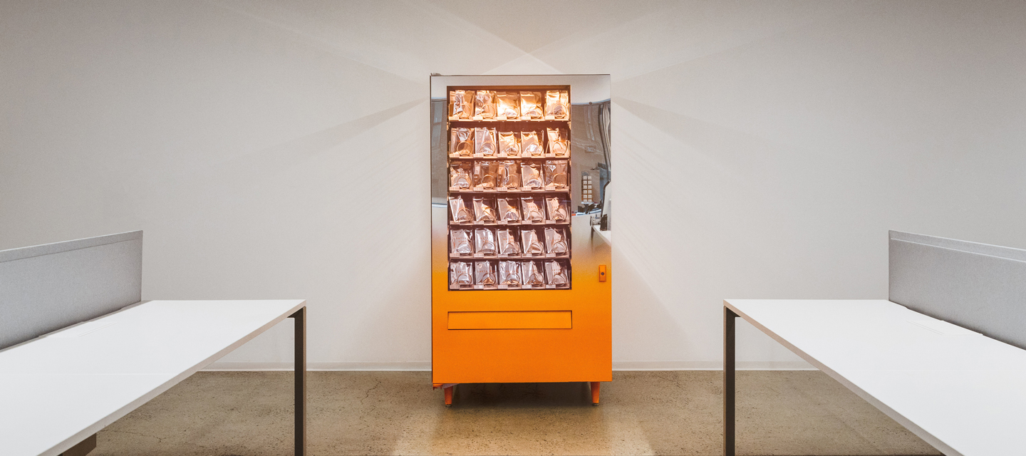 A visual metaphor for reflection, the machine uses facial recognition technology to mimic the experience of engaging with social media.